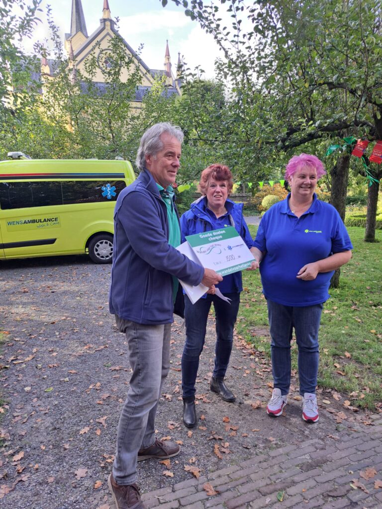 Wandel voor het Leven brengt een glimlach en steun aan Wish & Care Wensambulance Tiel! Een bruisende 24-uurs wandelervaring komt tot leven met een nobel doel in gedachten. Wandel voor het Leven is niet zomaar een wandelevenement; het is een kloppend hart van saamhorigheid en steun voor kankeronderzoek en nazorg. Teams, verenigd in een estafette, zetten hun beste beentje voor, niet alleen om kilometers af te leggen, maar ook om geld in te zamelen voor een zinvolle zaak. En dit jaar was het niet anders! Op een sfeervolle braderie, sprankelend van activiteiten, kwamen teams samen om niet alleen spullen te verkopen, maar ook kostbare momenten te delen. Hun missie? Een dag te creëren die gevuld is met lachende gezichten en ontroerende momenten. Dit alles met één gemeenschappelijk doel: het verslaan van kanker. Het resultaat van hun inzet en gulle giften van sponsoren werd niet alleen een cheque van €1500,00 voor KWF Kankerbestrijding en het Toon Hermans Huis, maar ook een hartverwarmende donatie aan de stichting Wish & Care Wensambulance in Tiel. Een gebaar dat verder reikt dan de bruisende atmosfeer van het wandelevenement. Wish & Care, een stichting met een prachtige missie, ontvangt deze steun met open armen. Hun doel? Het mogelijk maken van speciale wensen en zorg voor degenen die het meest kwetsbaar zijn. Dit gebaar versterkt de missie van Wandel voor het Leven: niet alleen geld inzamelen, maar ook levens raken, harten verwarmen en gemeenschappen samenbrengen. De stichting Wandel voor het Leven staat voor veel meer dan alleen een wandelevenement. Het is een symbool van hoop, verbondenheid en veerkracht. En met elke stap die gezet wordt, wordt niet alleen geld ingezameld, maar ook steun en liefde gegeven aan degenen die het het meest nodig hebben. De wandelschoenen zijn nu even opgeborgen, maar de impact van dit evenement strekt zich verder uit. Het laat een blijvende indruk achter, niet alleen in de vorm van een cheque, maar in de harten van degenen die dit evenement hebben gesteund en degenen die erdoor worden geholpen. Het is meer dan een cheque; het is een teken van gemeenschapskracht en mededogen dat een verschil maakt, stap voor stap.